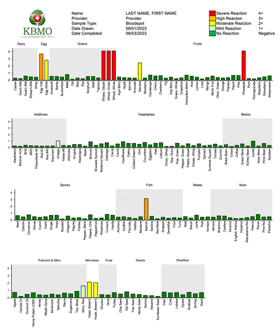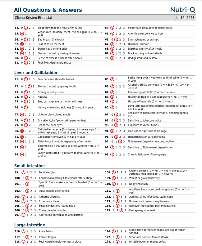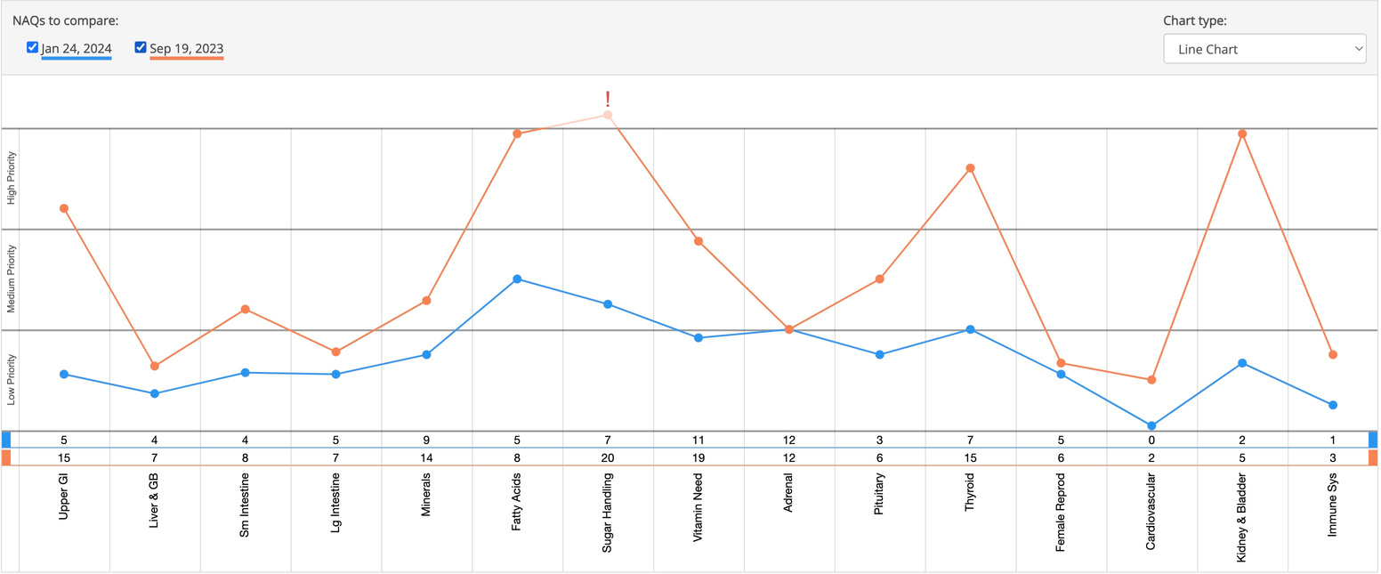 The health assessment will spit out a graph like the one you see above that will give us a good understanding of what areas your body is needing the most support.